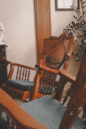Bathed in the golden embrace of sunlight, a pair of mahogany rocking chairs take center stage in this nostalgic snapshot. The warm, honey-toned wood exudes a sense of history and comfort, each chair a vessel of memories. Sunbeams filter through a nearby window, casting a soft, dappled glow that highlights the intricate grain of the chairs' surfaces. The air seems to carry whispers of bygone conversations and laughter, transporting you to a simpler time.