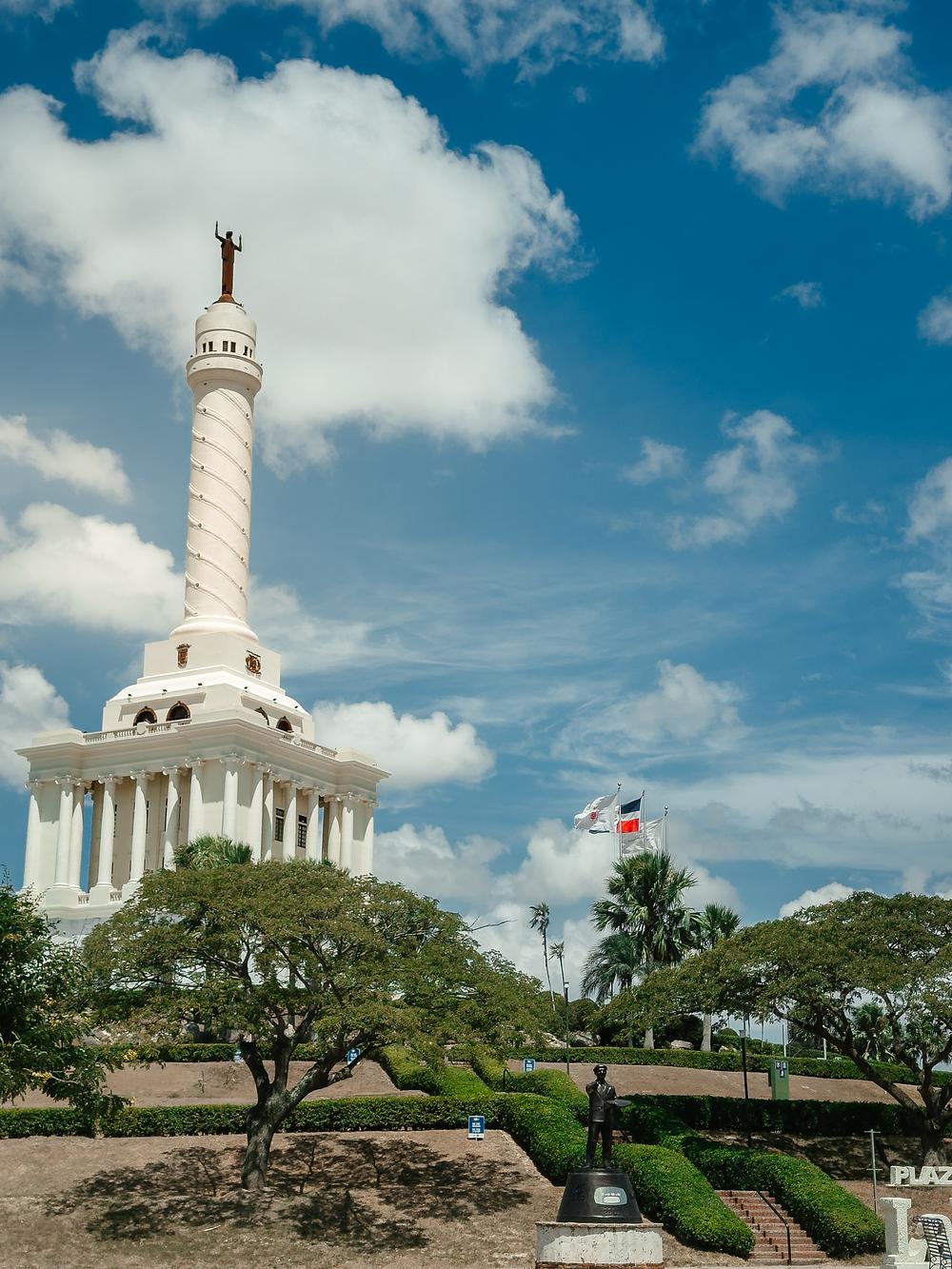 El Monumento de Santiago, also known as the Monumento a los Héroes de la Restauración, stands tall and proud against the backdrop of a bright, sunny day. This iconic landmark symbolizes the resilience and spirit of the Dominican Republic, serving as a reminder of the nation's rich history and achievements. Its impressive structure, bathed in sunlight, reflects the pride of the people, making it a beloved emblem of national identity and unity.