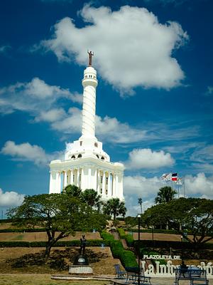 El Monumento de Santiago, also known as the Monumento a los Héroes de la Restauración, stands tall and proud against the backdrop of a bright, sunny day. This iconic landmark symbolizes the resilience and spirit of the Dominican Republic, serving as a reminder of the nation's rich history and achievements. Its impressive structure, bathed in sunlight, reflects the pride of the people, making it a beloved emblem of national identity and unity.