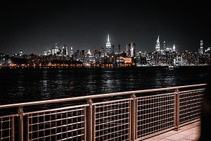In this captivating photo taken by the pier, the night comes alive with the dazzling brilliance of New York City's skyline. Towering skyscrapers adorned with glimmering lights stand proudly, casting their reflections upon the serene waters of the Hudson River. The city's iconic landmarks, like the Empire State Building and the Chrysler Tower , punctuate the horizon, creating a stunning interplay between urban architecture and the natural beauty of the river. The city lights dance across the water's surface, creating an enchanting symphony of colors. With the night sky as its backdrop, the scene exudes an air of sophistication and wonder, inviting viewers to immerse themselves in the allure of the city that never sleeps. It's a mesmerizing glimpse into the vibrant soul of New York City, where urban brilliance meets the calm expanse of the Hudson River under the embrace of the night.