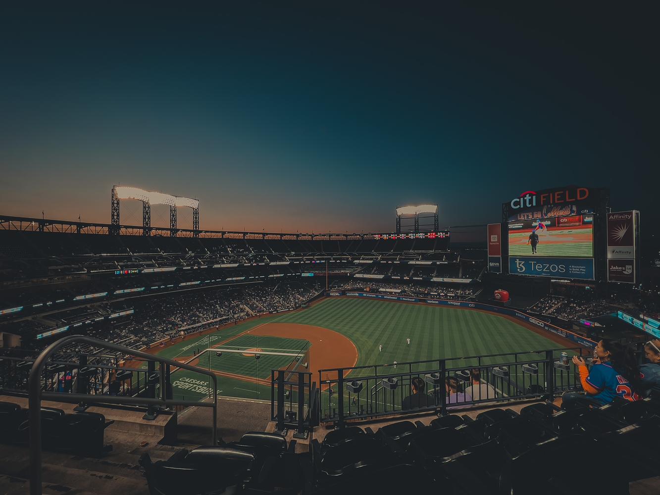 In this serene and contemplative photo of Citi Field, the stadium exudes an aura of calmness with its toned-down colors. The soft hues and gentle lighting create a tranquil ambiance, inviting viewers to take a moment of reflection amidst the sporting fervor.