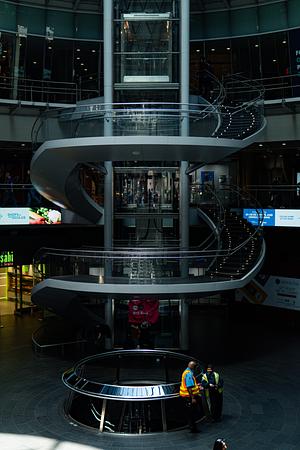 Step into the future with this captivating photo of the Fulton Street train station. A vision of modernity, it immerses you in a world of sleek metal and steel, transporting you to the new millennium.