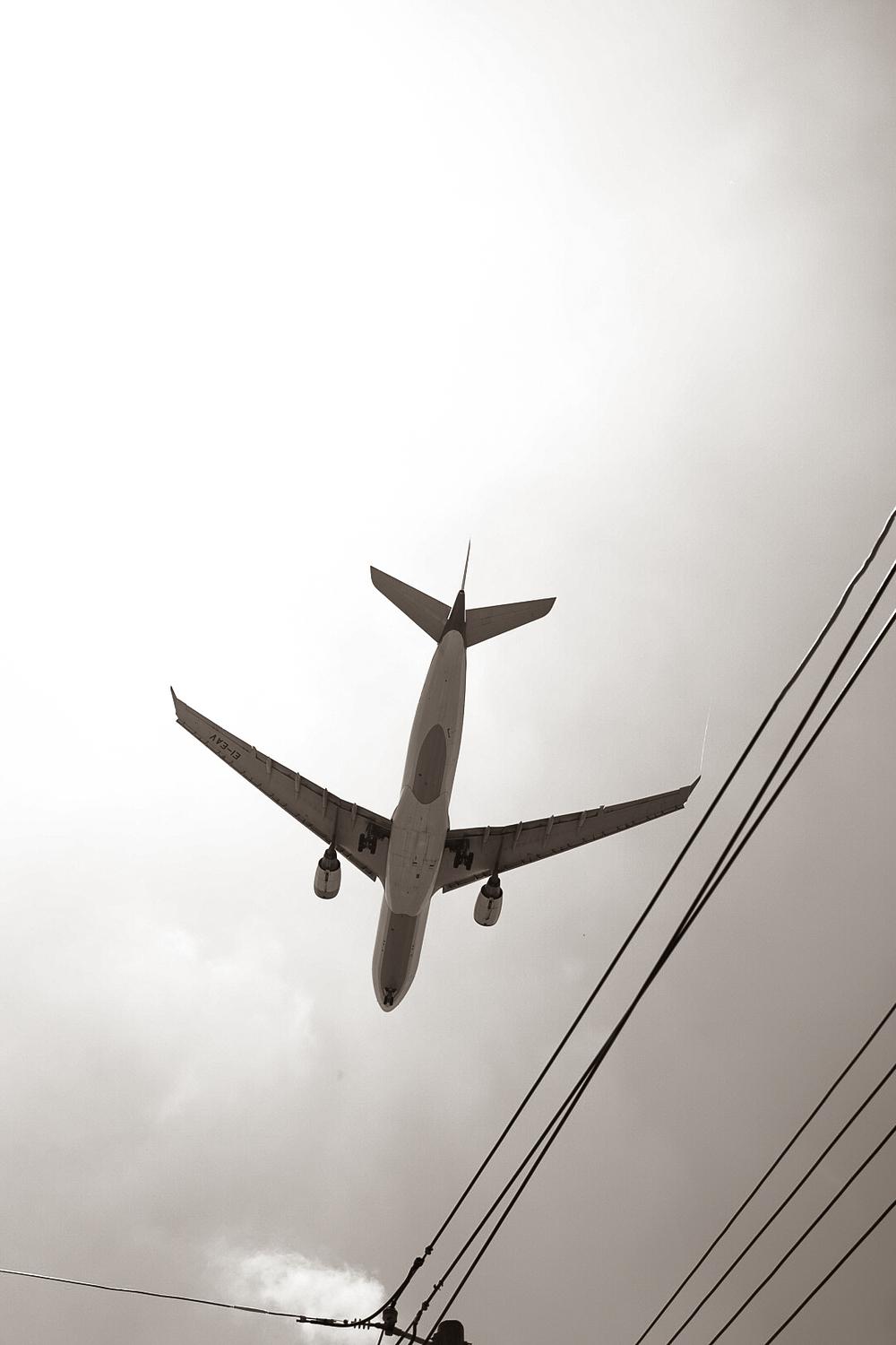 Amidst this atmospheric symphony, an airplane emerges as the solitary protagonist. Flying low and determined, it navigates through the textured layers of clouds, its wings creating an elegant silhouette against the indistinct horizon. The monochrome palette accentuates the stark beauty of this isolated moment, where the world seems to shrink, and the focus narrows to the plane's determined path through the enigmatic tapestry of the skies.